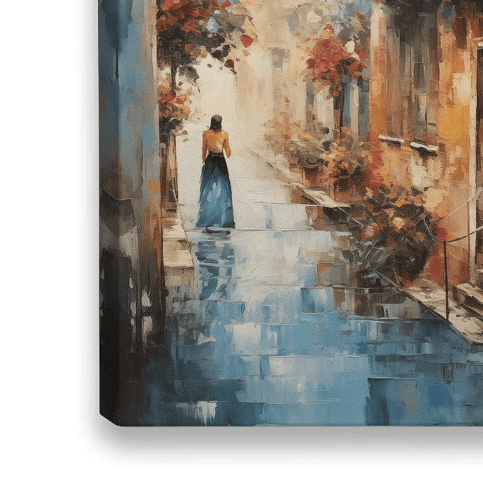 Blick auf die Straße der Stadt in Italien, Ölgemälde, Kunstdesign, vertikal