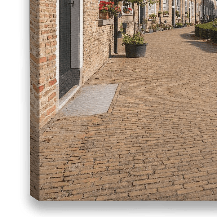 Ein Blick durch den Breda Beginenhof mit viel Tiefe. Das ist der erste Blick, den man bekommt, wenn man diese Oase der Ruhe im Stadtzentrum betritt. Indem ich nahe am Haus links stand und ein Tilt-Shift-Objektiv verwendete, konnte ich dieses Foto mit Perspektive erstellen. Eine schöne Ergänzung für die Breda-Kollektion.