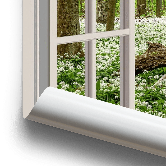 Bestelle das Foto Blick durch das Fenster in den Frühlingswald von Thomas Herzog als Kunstdruck auf Leinwand, Alu-Dibond, als Poster, Fototapete oder Acrylglasbild.