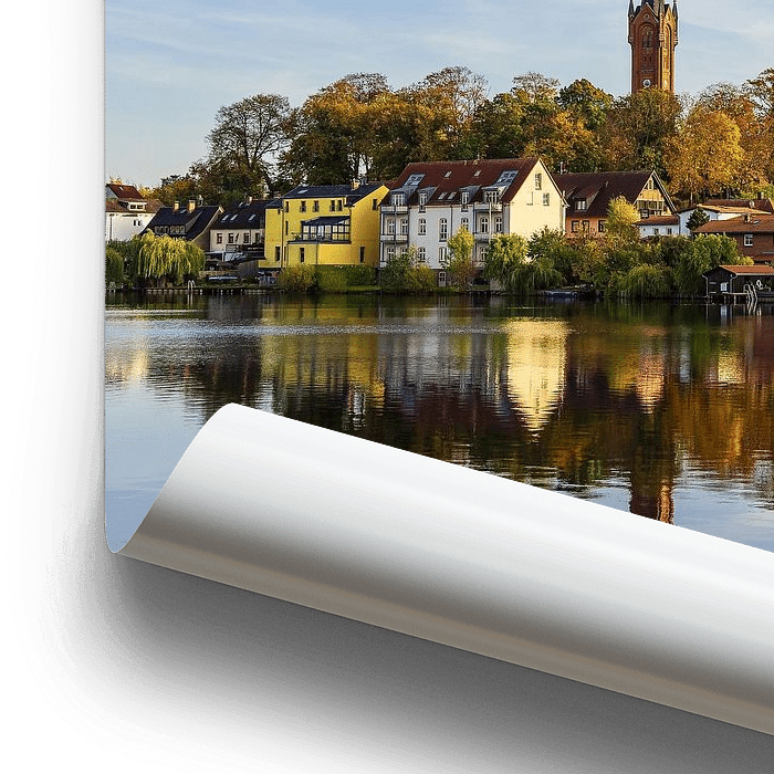 Bestelle das Foto Blick über den Haussee auf die Stadt Feldberg von Rico Ködder als Reproduktion auf Leinwand, Alu-Dibond, als Poster, Fototapete oder Acrylglasbild.