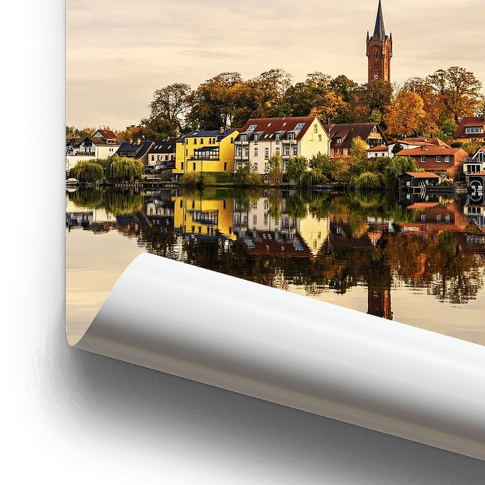 Bestelle das Foto Blick über den Haussee auf die Stadt Feldberg von Rico Ködder als Reproduktion auf Leinwand, Alu-Dibond, als Poster, Fototapete oder Acrylglasbild.