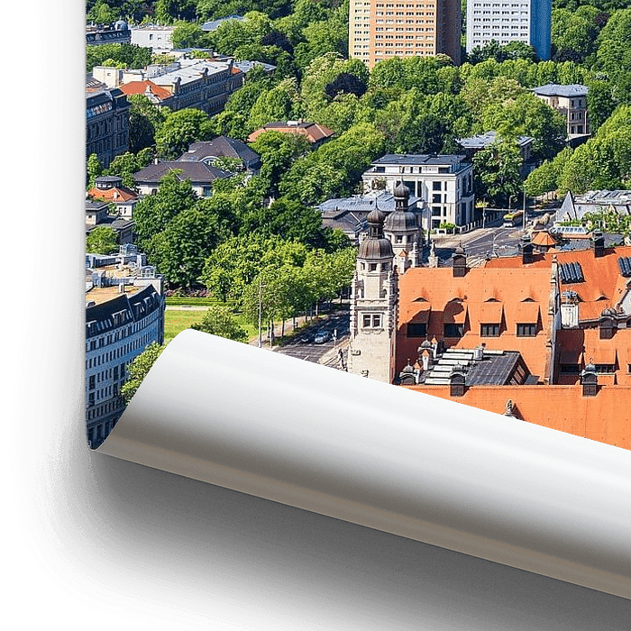 Bestelle das Foto Blick über die Stadt Leipzig mit dem Neuen Rathaus von Rico Ködder als Reproduktion auf Leinwand, Alu-Dibond, als Poster, Fototapete oder Acrylglasbild.