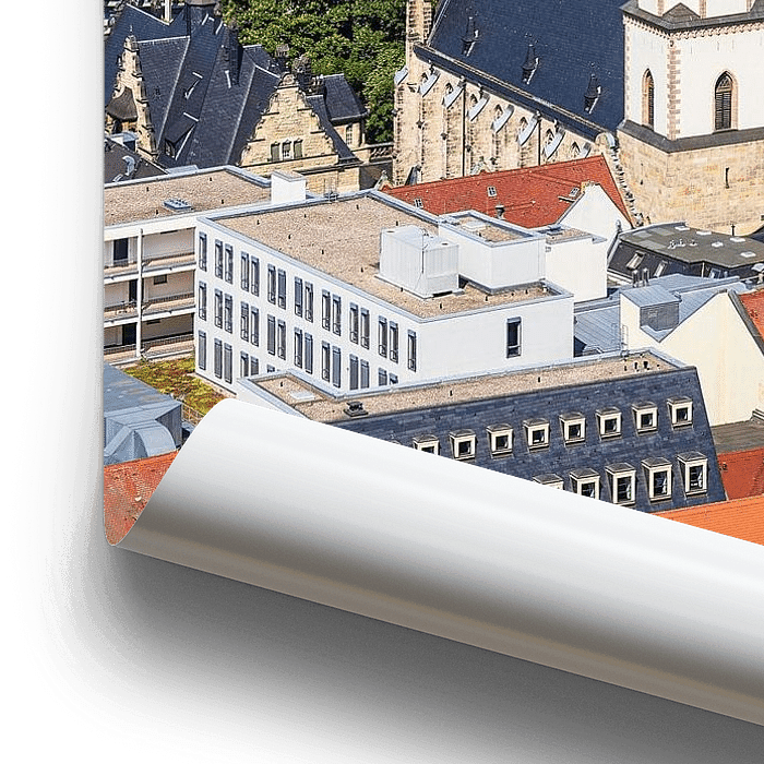 Bestelle das Foto Blick über die Stadt Leipzig mit der Thomaskirche von Rico Ködder als Reproduktion auf Leinwand, Alu-Dibond, als Poster, Fototapete oder Acrylglasbild.