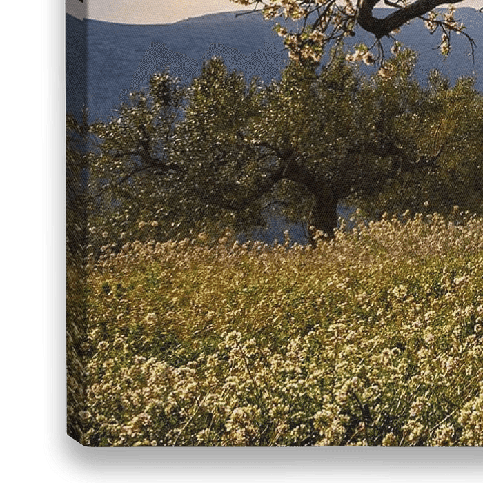 Bestelle das Foto Blühende Mandelbäume Spanien-Landschaft von Peter Bolman als Reproduktion auf Leinwand, Alu-Dibond, als Poster, Fototapete oder Acrylglasbild.