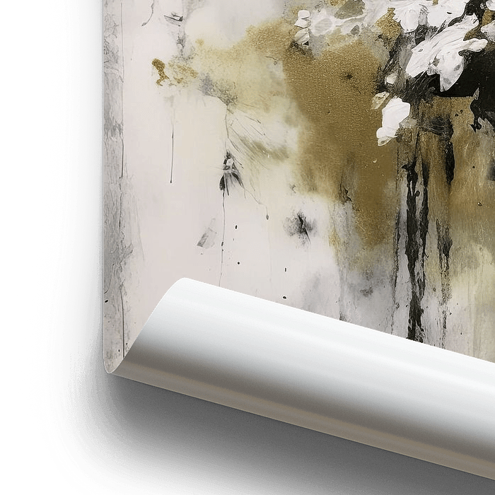 Abstrakte Blüte in Weiß, Gold und Olivgrün