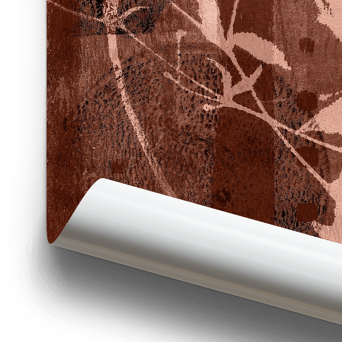 Bestelle dieses abstrakte Wandbild Blumen und abstrakte Formen in rostigem Dunkelbraun. von Dina Dankers als Reproduktion auf Leinwand, Alu-Dibond, als Poster, Fototapete oder Acrylglasbild.