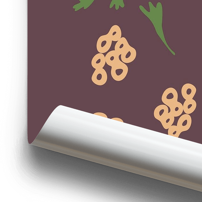 Einfache, halb abstrakte Blumenmotive in einer retro-inspirierten Farbpalette.