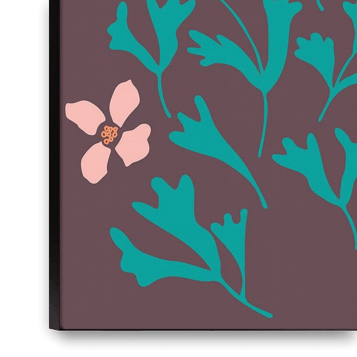 Einfache, halb abstrakte Blumenmotive in einer retro-inspirierten Farbpalette. Grafische Collage aus Blumenformen. Romantischer, böhmischer, Retro-, eklektischer, neuer ländlicher, skandinavischer Wohnstil.