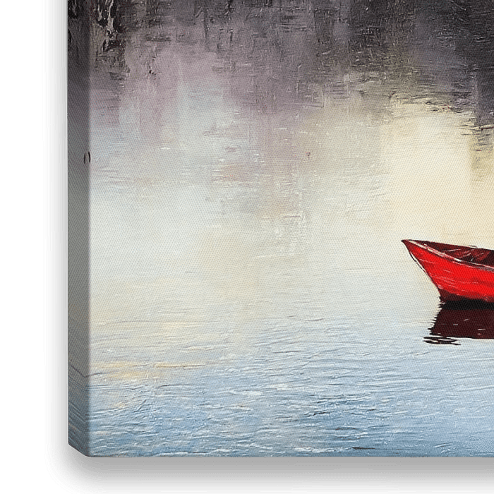 Ein kleines rotes Boot treibt friedlich auf einer ruhigen Wasseroberfläche, während lebendige, abstrakte Reflexionen verschiedener Farben auf dem Wasser tanzen. Im Hintergrund sind hohe, undeutliche Strukturen zu sehen, die der Szene Tiefe und Faszination verleihen.... Das digitale Kunstbild wurde von mir designt, wobei ich Komposition,…