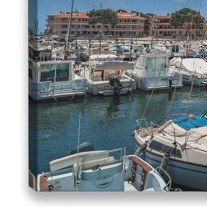 Bestelle das Foto Boote im Jachthafen von Cala Bona auf der Insel Mallorca, Spanien Mittelmeer von Alex Winter als Reproduktion auf Leinwand, Alu-Dibond, als Poster, Fototapete oder Acrylglasbild.