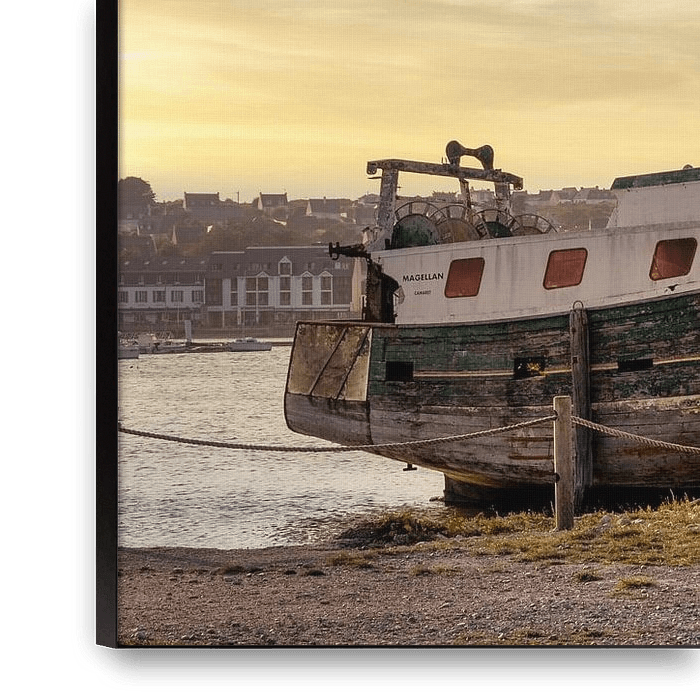Bestelle das Foto Bootsfriedhof in Camaret-sur-Mer in der Bretagne, Frankreich von Carla Schenk als Reproduktion auf Leinwand, Alu-Dibond, als Poster, Fototapete oder Acrylglasbild.