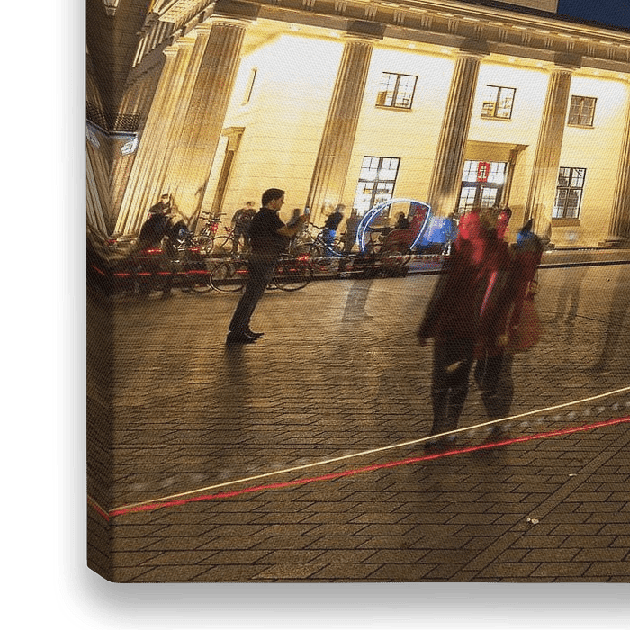 Das Brandenburger Tor in Berlin bei Nacht und bunt illuminiert.