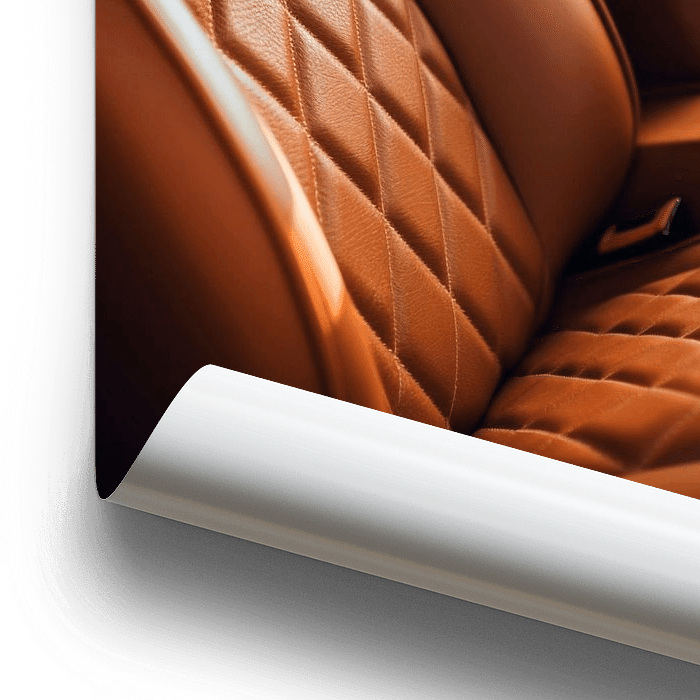 Bestelle das Foto Braune Rücksitzbank von drdigitaldesign als Reproduktion auf Leinwand, Alu-Dibond, als Poster, Fototapete oder Acrylglasbild.