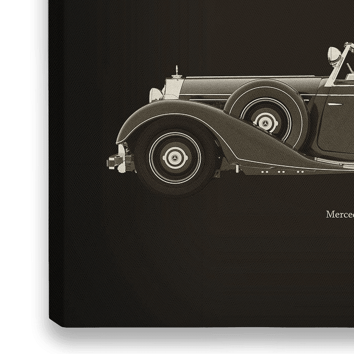 Bestelle das digitale Kunst Bild Bugatti 57-SC Atlantic 1938 und Mercedes 770-K Limousine 1938 von Jan Keteleer als Reproduktion auf Leinwand, Alu-Dibond, als Poster, Fototapete oder Acrylglasbild.