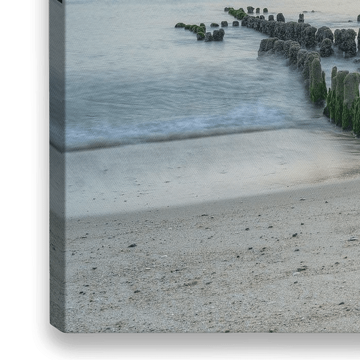 Am Strand bei Rantum auf Sylt ragt diese alte Holzbuhne aus der Nordsee. Bei Niedrigwasser ist sie besonders gut zu sehen.