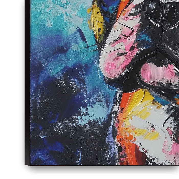 Bulldogge Kunst | Expressive Bulldog Art - Mit lebendigen, ausdrucksstarken Pinselstrichen bringt dieses Porträt einer französischen Bulldogge viel Energie in den Raum. Die Farben spritzen von der Leinwand, wobei jeder Pinselstrich zum temperamentvollen Wesen des Tieres beiträgt. Die Verwendung von Primär- und Sekundärfarben sorgt für…