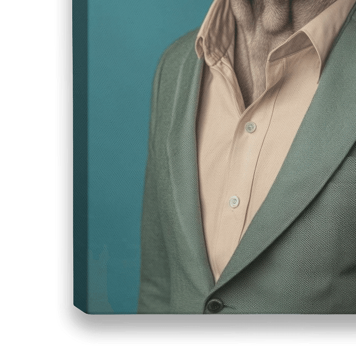 Mit majestätischer Ausstrahlung und einem Ausdruck von unerschütterlicher Loyalität wirkt der Bullmastiff in seinem eleganten Anzug fast menschlich. Seine markante, breite Schnauze und die tiefen, treuen Augen strahlen sowohl Stärke als auch Sanftmut aus. Ein faszinierender Anblick, der das Wesen dieses imposanten Tieres perfekt einfängt.