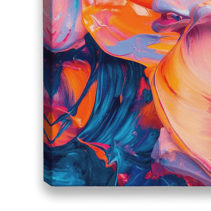 Ein kaleidoskopisches Farbspiel entfaltet sich in sanften, fließenden Linien, die an ein kreatives Chaos erinnern. Lebendige Farbtöne von Lila, Orange und Pink tanzen harmonisch miteinander und erzeugen eine einladende, lebendige Atmosphäre. Ideal für das Wohnzimmer, verleiht es dem Raum einen Hauch von Kreativität und Lebensfreude.