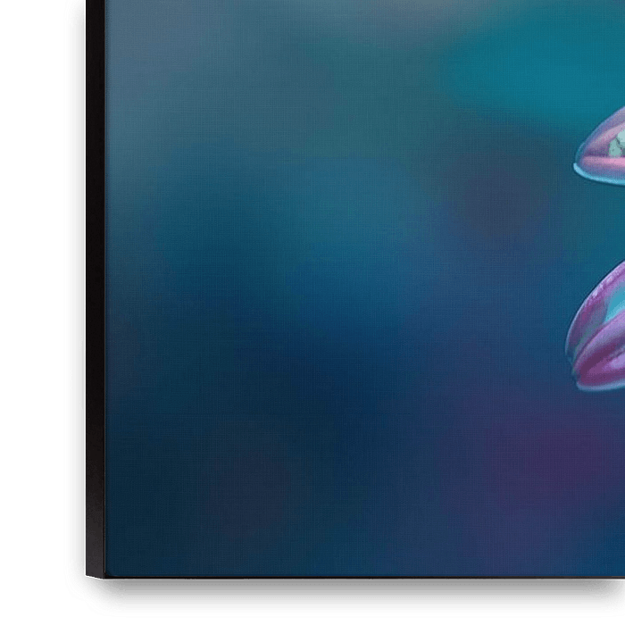 Ihre gewählte Kunst auf Leinwand, gespannt in einem Aluminiumrahmen. Schnell und einfach austauschbar für eine frische Ausstrahlung und ganz nach Ihren Wünschen.