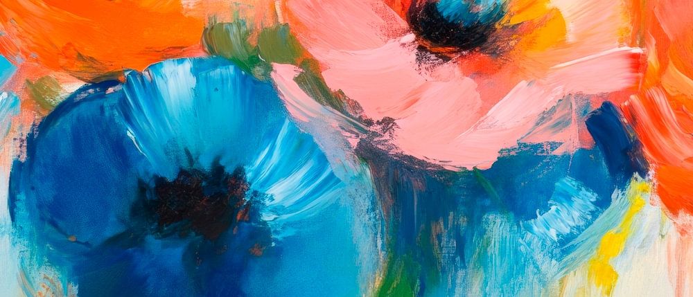 Lebendige Farben und sanfte Pinselstriche vereinen sich in einem floralen Spiel, das Frische und Lebensfreude ausstrahlt. Die kräftigen Blüten in Blau, Orange und Pink laden förmlich dazu ein, den Raum mit Energie zu füllen. Ideal für das Wohnzimmer, wo sie Geselligkeit und Entspannung harmonisch unterstützen.