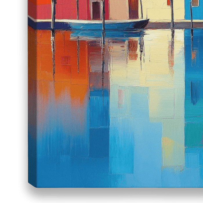 Bestelle dieses abstrakte Wandbild Bunte Häuser von Burano von ARTemberaubend als Reproduktion auf Leinwand, Alu-Dibond, als Poster, Fototapete oder Acrylglasbild.