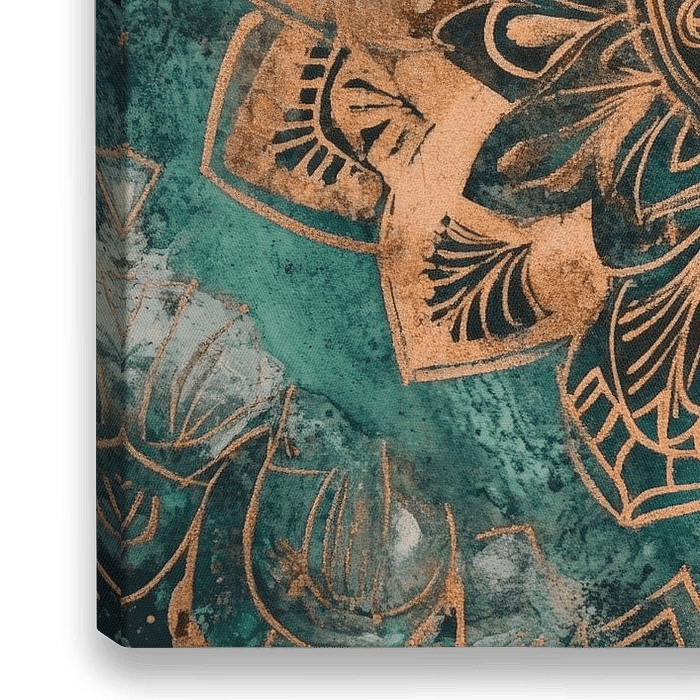 Mit fesselnden goldenen Mandala-Mustern auf einem beruhigenden, tiefblauen Hintergrund entfaltet dieses Kunstwerk eine harmonische Aura. Die filigranen Details und die sanften Farbnuancen laden zum Träumen und Entspannen ein. Ideal für das Schlafzimmer oder einen meditativen Raum, bringt es Ruhe und Eleganz in jeden Bereich.