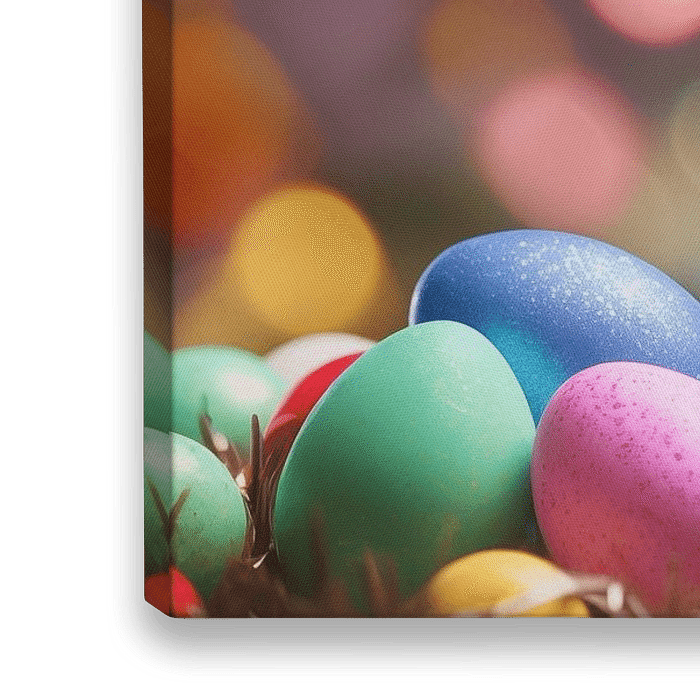 Bestelle dieses Blumen-Wandbild Bunter Bokeh-Hintergrund mit Osterneier für Ostern von Animaflora PicsStock als Reproduktion auf Leinwand, Alu-Dibond, als Poster, Fototapete oder Acrylglasbild.