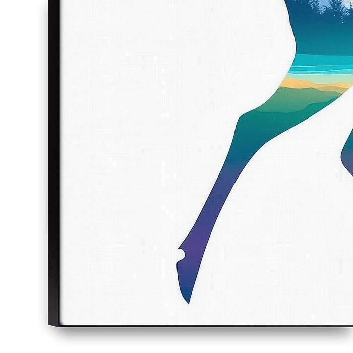 Bestelle dieses Landschafts-Wandbild Bunter Hirschsilhouette von Poster Art Shop als Reproduktion auf Leinwand, Alu-Dibond, als Poster, Fototapete oder Acrylglasbild.
