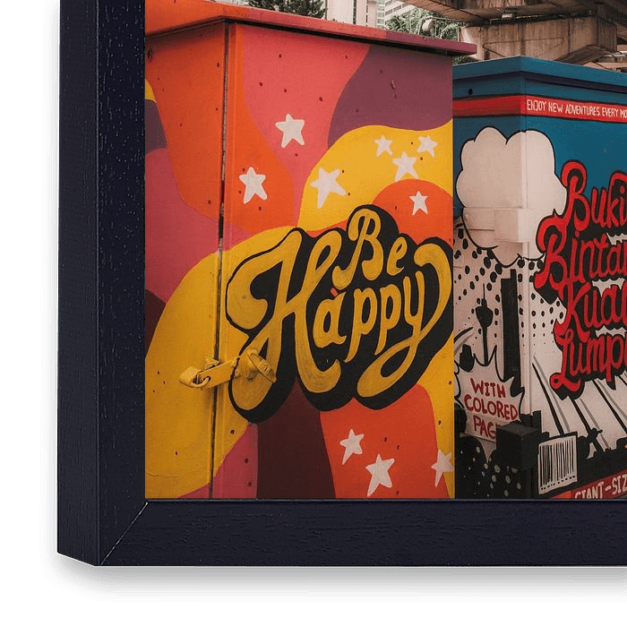 Das Fotomotiv zeigt die dynamische Seite von Kuala Lumpur, Malaysias pulsierender Hauptstadt. Die rote Monorail fährt erhöht vorbei an farbenfrohen Streetart-Stromkästen im Bezirkszentrum Bukit Bintang. Urbanes Design, leuchtende Farben und moderne Verkehrsmittel treffen hier aufeinander und vermitteln das Gefühl einer kreativen, lebendigen Großstadt. Bukit Bintang ist beliebt für Shopping, Nachtleben und zeitgenössische Kunstwerke, die das Viertel prägen. Die knalligen Farben der Straßenkunst mit Botschaften wie „Be Happy“ spiegeln den optimistischen und offenen Charakter der Metropole wider. Die innovative Architektur, die Sicht auf Hochhäuser und das Zusammenspiel von Natur und urbaner Infrastruktur machen das Bild zu einem idealen Kunstwerk für Trendsetter, Stadtliebhaber und Menschen, die moderne Lebensfreude schätzen. Es eignet sich besonders als Dekoration für Arbeitsbereiche, Studios und Apartments – Inspiration und Energie für jeden Tag inklusive.