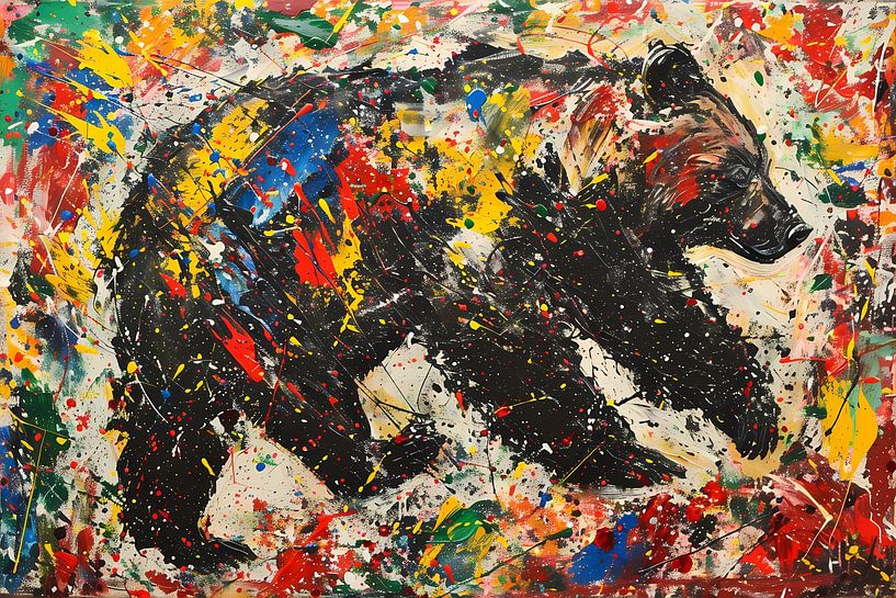 Bestelle dieses abstrakte Wandbild Buntes modernes Gemälde eines Bären von Art & Soul Creations als Reproduktion auf Leinwand, Alu-Dibond, als Poster, Fototapete oder Acrylglasbild.