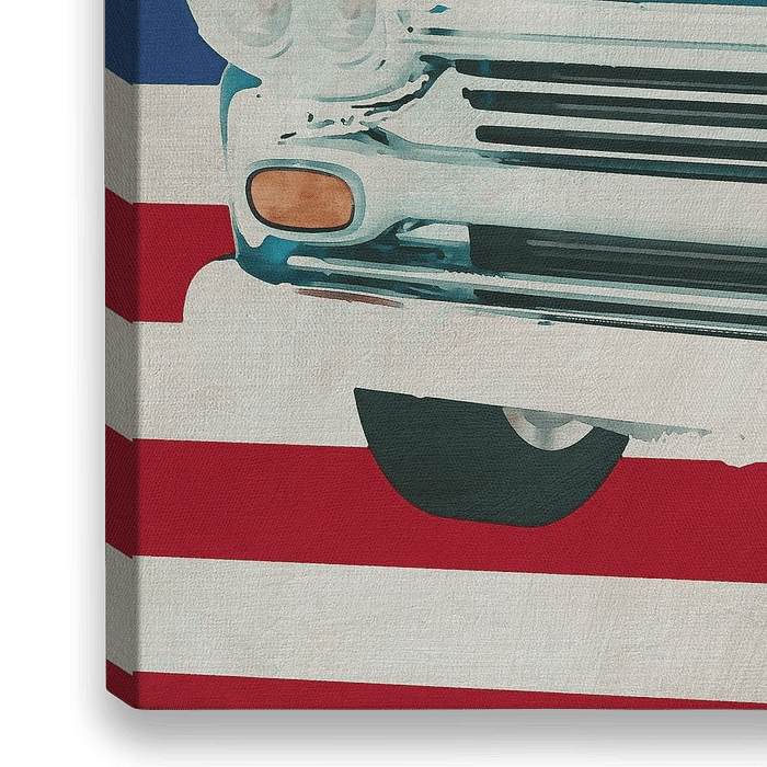 Bestelle dieses Popart-Wandbild Chevrolet Apache 1959 mit Flagge der U.S.A. von Jan Keteleer als Reproduktion auf Leinwand, Alu-Dibond, als Poster, Fototapete oder Acrylglasbild.
