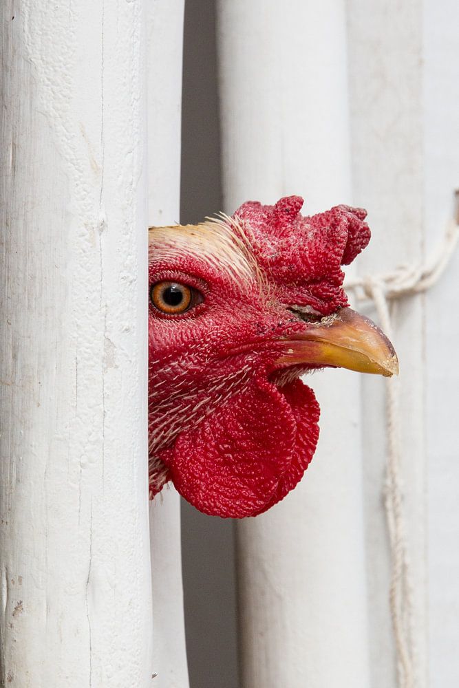 Nieuwsgierige kip, unieke compositie die de aandacht opeist