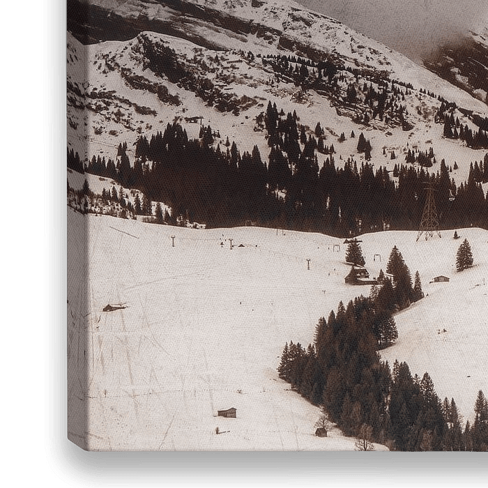 Die Churfirsten im Toggenburg in der Schweiz bei düsterem, bewölktem Wetter. Mit Textur