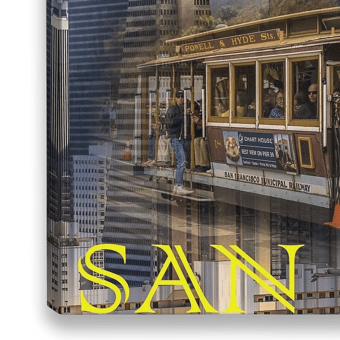 Collage San Francisco Kalifornien USA mit Cable Car, Transamerica Pyramid, Golden Gate Bridge, Painted Ladies, Fisherman's Wharf und Downtown