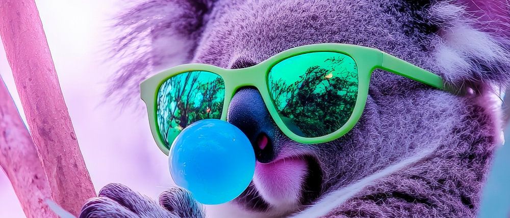 Ein fröhlicher Koala, ausgestattet mit schimmernden Sonnenbrillen und einem bunten Ball, strahlt pure Lebensfreude aus. Die lebendigen Farben und der spielerische Ausdruck verleihen jedem Raum einen Hauch von Fröhlichkeit. Ideal für das Wohnzimmer, um eine entspannte und einladende Atmosphäre zu schaffen, die zum Lachen und Verweilen einlädt.
