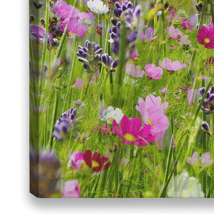 Bestelle dieses Blumen-Wandbild Cosmea und Lavendel von Hanneke Luit als Reproduktion auf Leinwand, Alu-Dibond, als Poster, Fototapete oder Acrylglasbild.