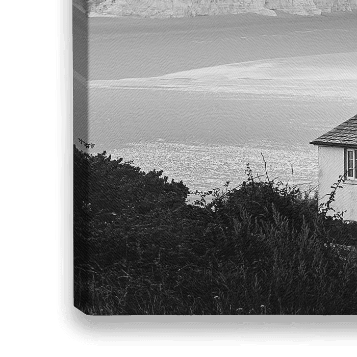 Eine Schwarz-Weiß-Fotografie eines Morgens in Cuckmere Haven und dem Cuckmere Valley, zusammen mit den Seven Sisters Cliffs im Seaford Head Nature Reserve in East Sussex, England.