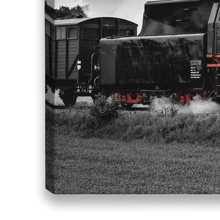 Alte Dampflokomotive auf der kleinen Strecke zwischen Apeldoorn und Dieren. Die alten Dampfzüge werden von der Veluwsche Dampfzuggesellschaft gewartet. Foto in Schwarz-Weiß mit selektiver roter Farbe.