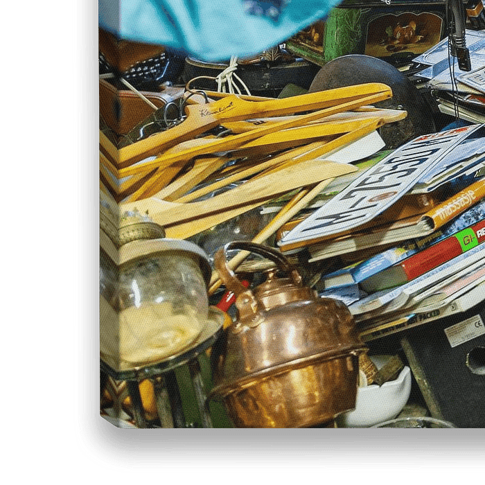 Chaotisches Antiquariat vollgepackt mit allen möglichen Sachen in der Stadt Bergen, Norwegen. Sie betreten dieses Geschäft unter Lebensgefahr und auf die Gefahr hin, dass Sie alles, was Sie versehentlich kaputt machen, kaufen müssen. Marie Kondo räumt hier noch auf. Dieses Bild wurde im Sommer 2018 aufgenommen.
