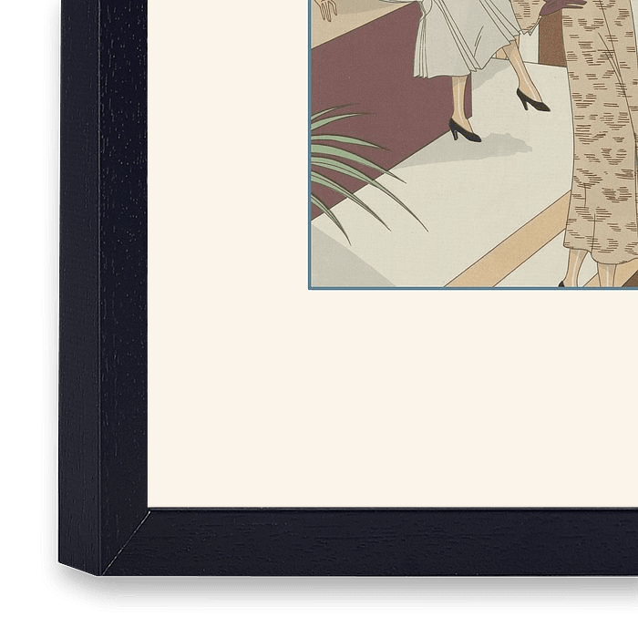 Ein historischer Modedruck mit einem modernen Twist. Inspiriert vom Art Deco, einer Stilrichtung, die in den 1920er Jahren entstand. New Businessmanship gemischt mit modernen klaren Linien und Farben.