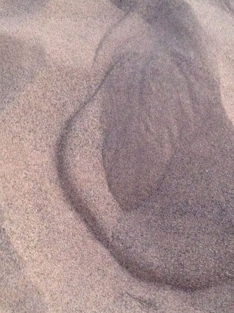 Op deze foto is een afdruk van een veer in het zand te zien. Het indrukwekkende lichte zand van de Marokkaanse woestijn heeft deze veer prachtig gekopieerd.