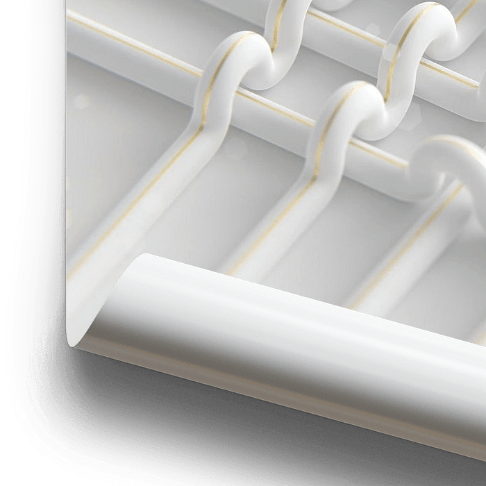 Rendering mit porzellan-ähnlichen Rohren und goldenen Streifen. Mit Schärfenuntiefe, leichten chromatischen Aberrationen und Staub.