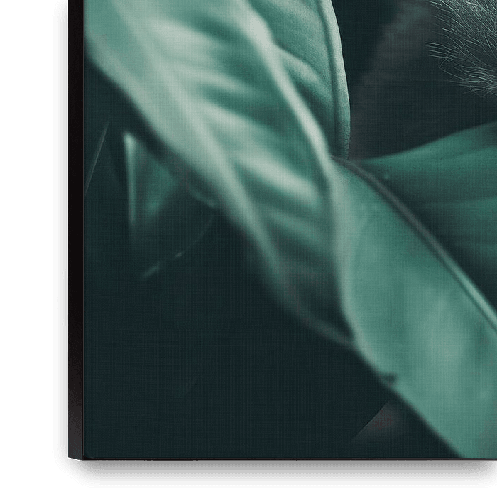 "Gaze of Wonder" ist ein detailliertes Porträt eines Languren, der sich inmitten des üppigen Grüns seines natürlichen Lebensraums versteckt. Die faszinierenden orangefarbenen Augen des Tieres ziehen den Betrachter sofort in ihren Bann und schaffen ein Gefühl der sofortigen Verbundenheit. Die sattgrünen Blätter umrahmen das…