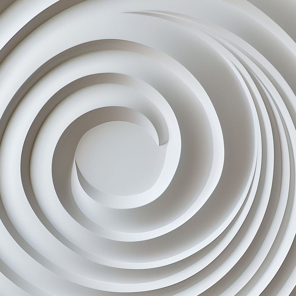 Modernes abstraktes Bild von Fibonachi Kreisen auf einem sauberen weißen Hintergrund. Schöne organische Formen in einer dreidimensionalen Komposition schaffen eine besonders fesselnde Darstellung. Passt zu verschiedenen Stilen und Trends, einschließlich abstrakt, modern abstrakt, weiß, Verbindung. Künstler: Bianca ter Riet