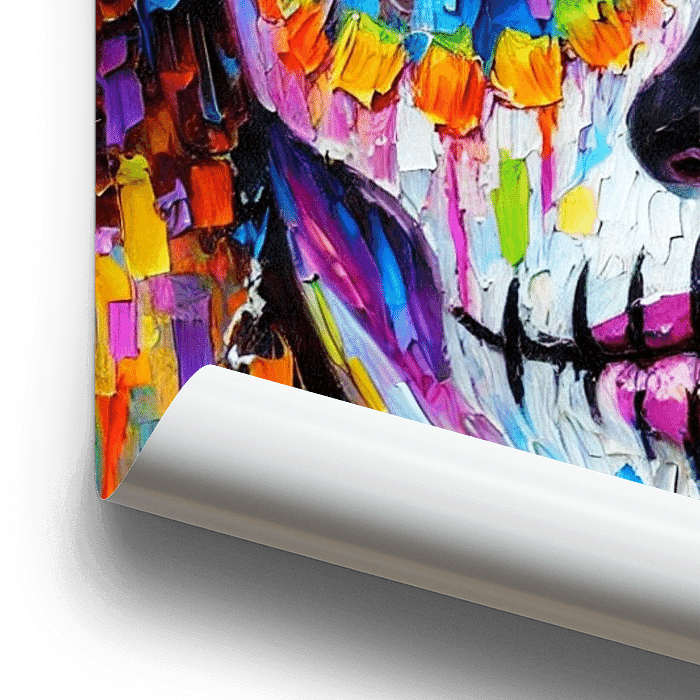 Dieses lebendige Poster zum Día de los Muertos fängt die Essenz des mexikanischen Feiertags perfekt ein. Das Bild zeigt ein farbenfrohes Gesicht, bemalt im traditionellen Stil der Calavera-Skulls, um das Leben und die Erinnerung an Verstorbene zu feiern. Die dynamischen Pinselstriche und die kräftigen Farben verleihen dem Poster eine…