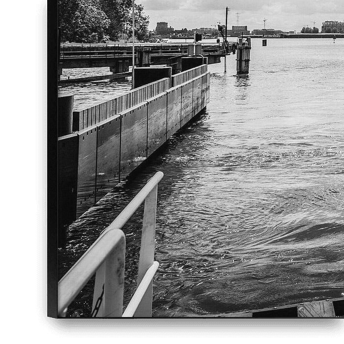 Bestelle dieses Landschafts-Wandbild Die Fähre, Amsterdam von Saskia Bakker als Reproduktion auf Leinwand, Alu-Dibond, als Poster, Fototapete oder Acrylglasbild.