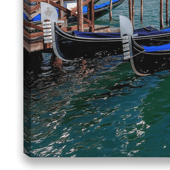 Die schönen Gondeln von Venedig, die auf ein romantisches Pärchen für eine Fahrt warten.