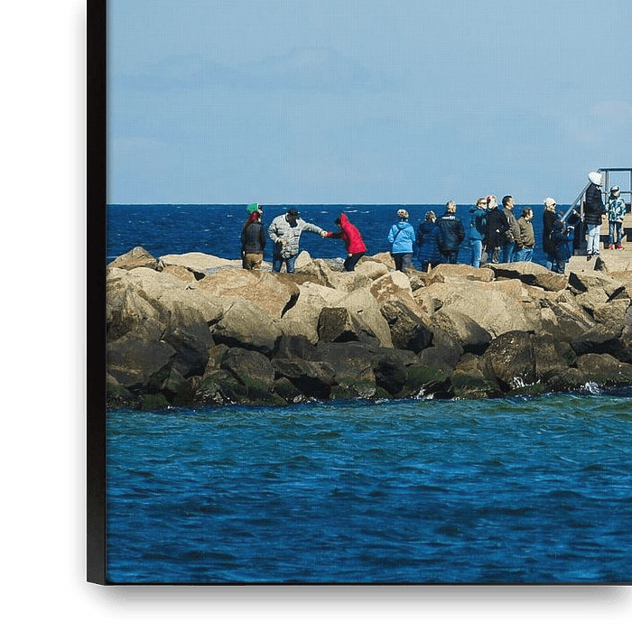Bestelle das Foto Die Mole in Warnemünde von Rico Ködder als Reproduktion auf Leinwand, Alu-Dibond, als Poster, Fototapete oder Acrylglasbild.
