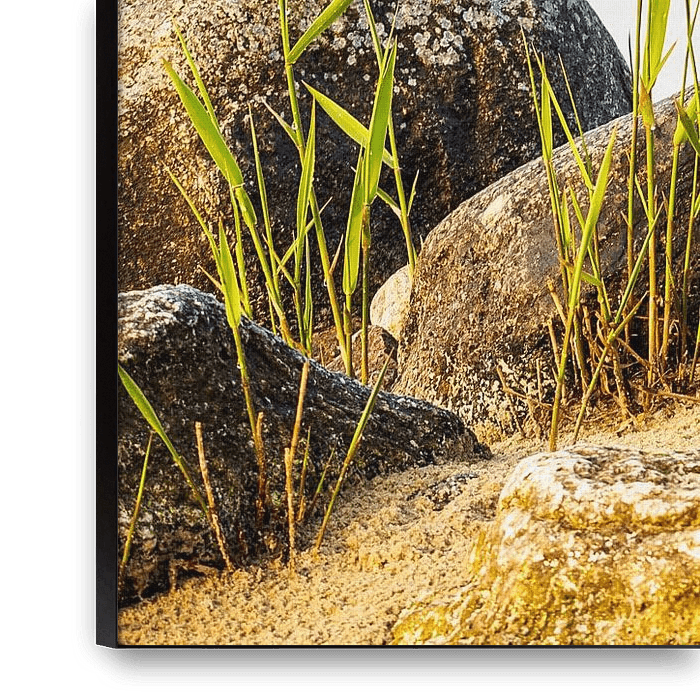 Ihre gewählte Kunst auf Leinwand, gespannt in einem Aluminiumrahmen. Schnell und einfach austauschbar für eine frische Ausstrahlung und ganz nach Ihren Wünschen.