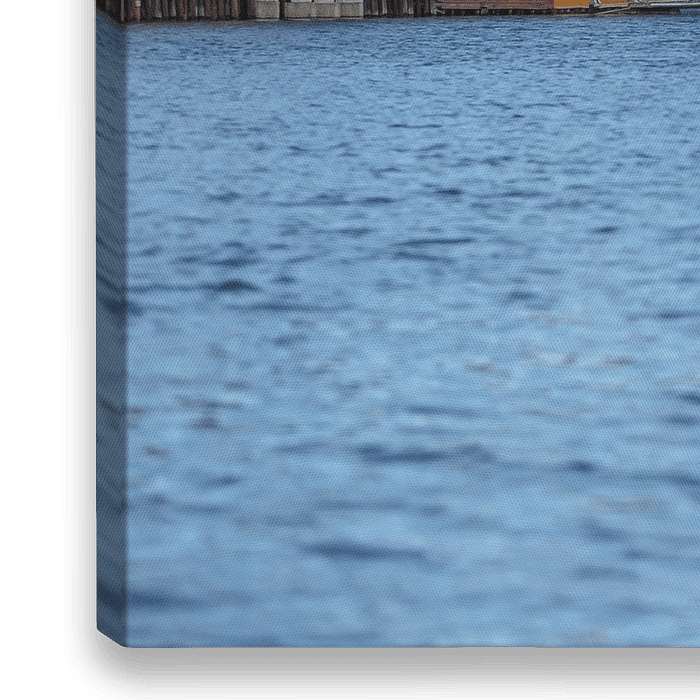 Die bunten Lagerhäuser von Trondheim am Fluss Nidelva. Sie stehen auf hölzernen Stelzen im Wasser und werden heute oft zu Wohn- oder Geschäftsräumen umgebaut.